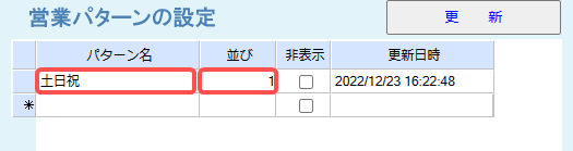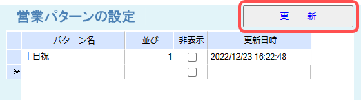 日にちや、曜日によって営業時間が異なる場合は営業パターンの作成が必要になります。