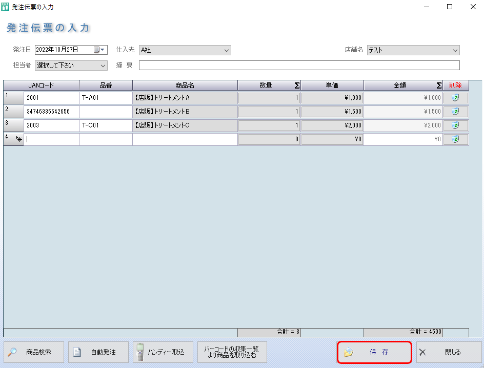 削除したい場合は、該当伝票の「削除」を押下してください。