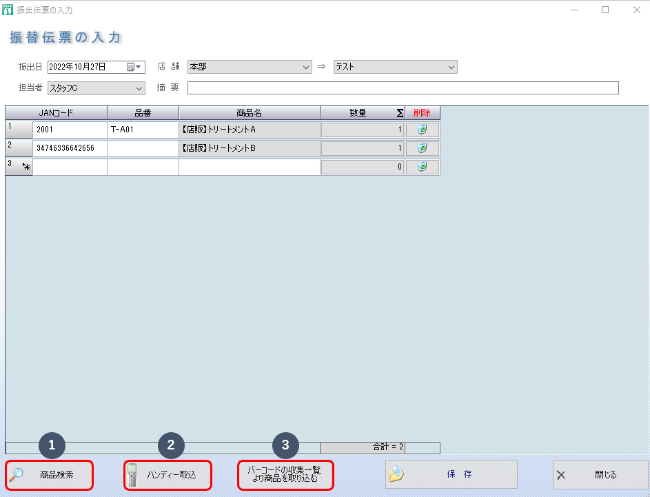 ⒊ 振替する商品を入力してください。
