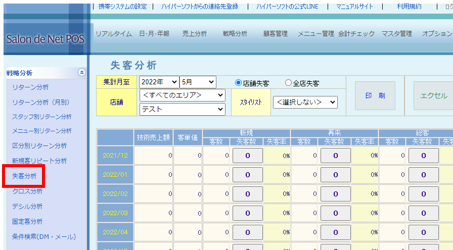 3. 画面左側に表示される『失客分析』をクリックしてください。
