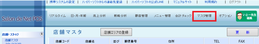 2. 画面上部に表示される「マスタ管理」を押下してください。