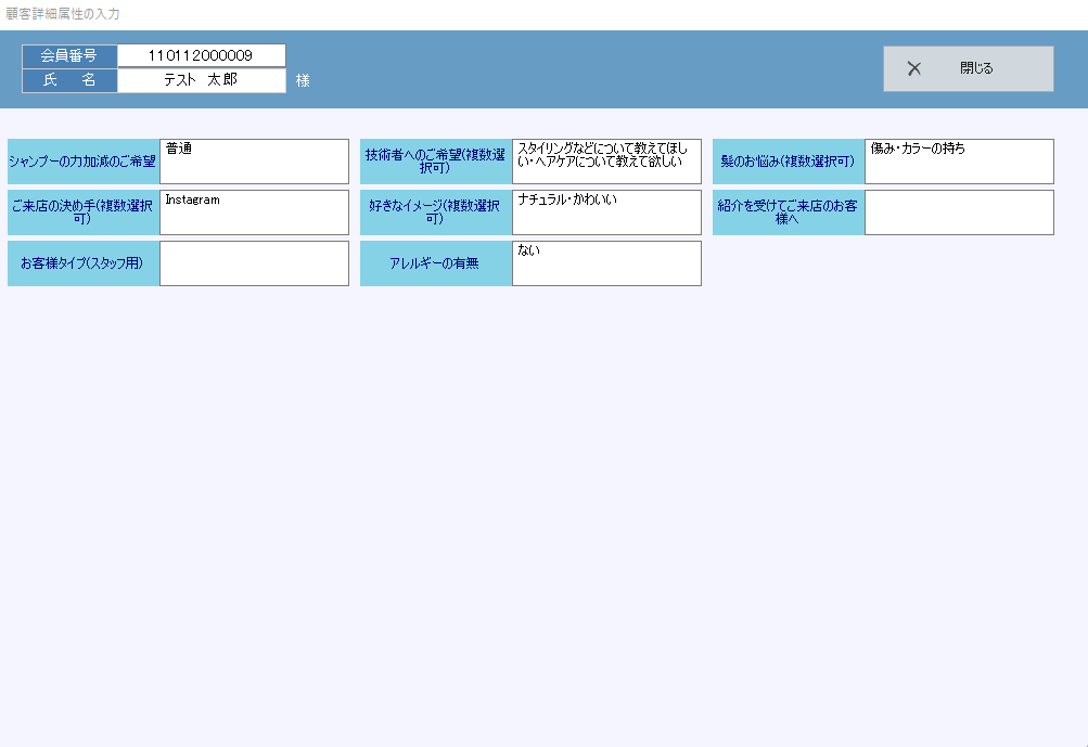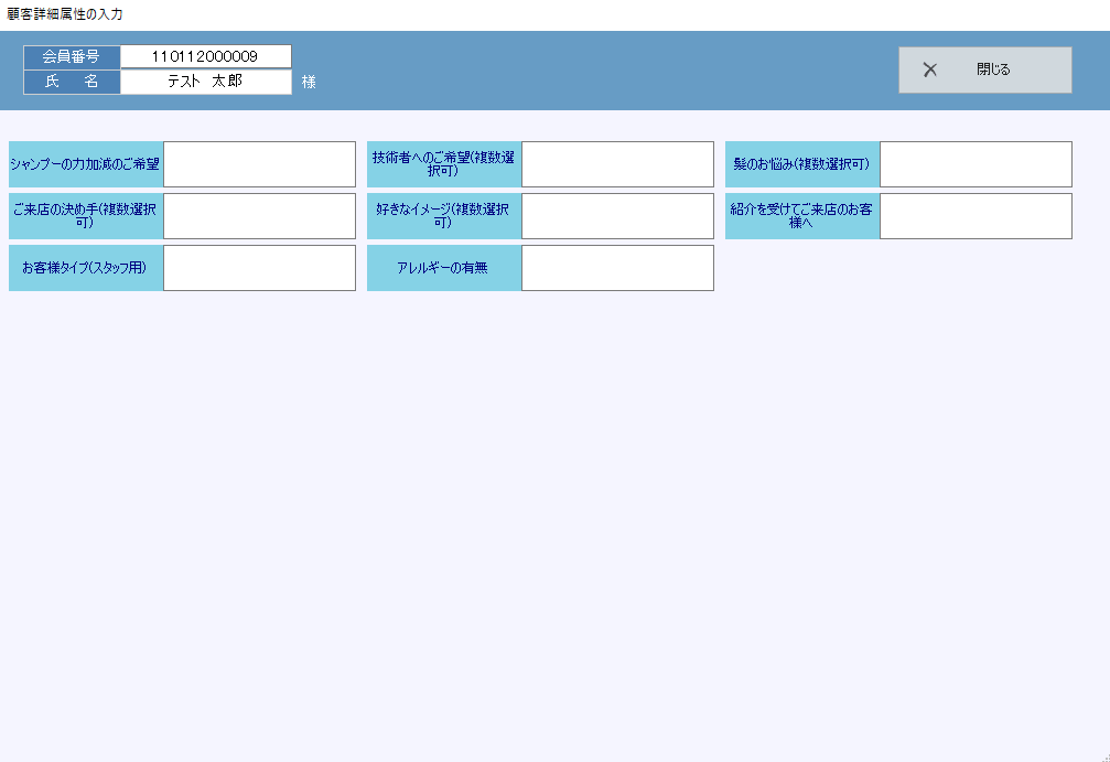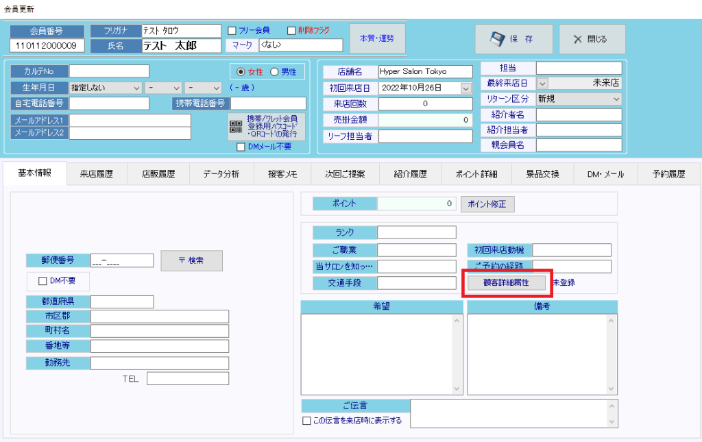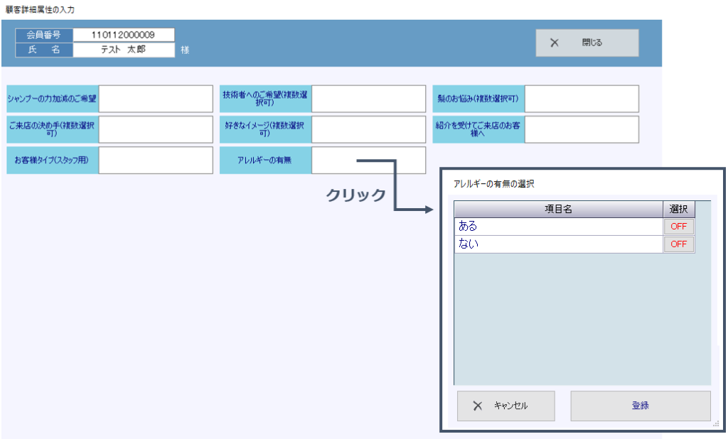 POSやReserveで会員情報を開き、基本情報タブを開いて、画面右側にある「顧客詳細属性」を押下してください。