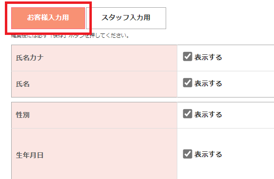 5. 「お客様入力用」と「スタッフ入力用」があるので「お客様入力用」を開いてください。