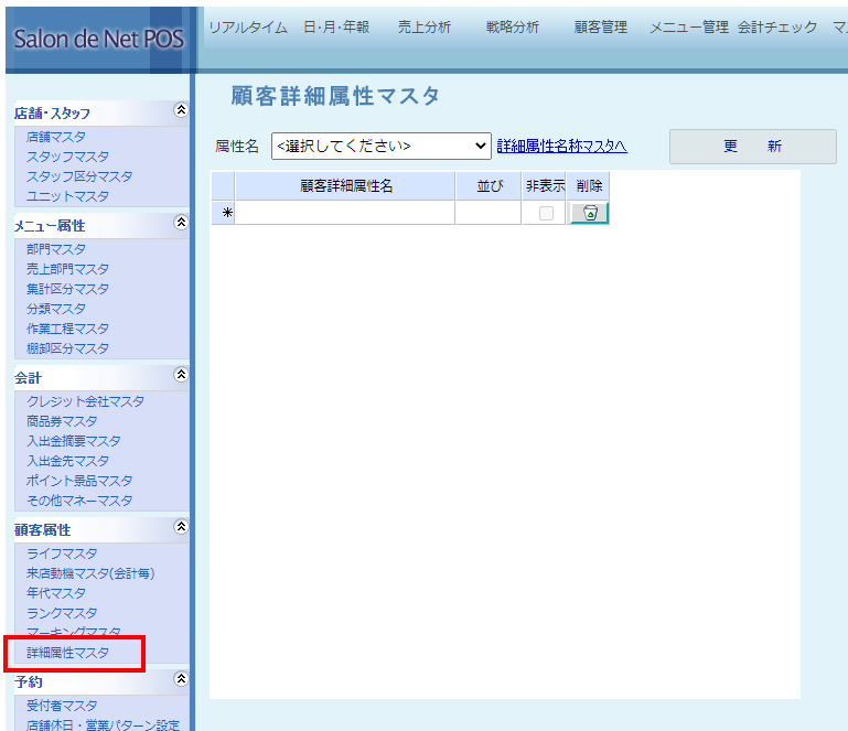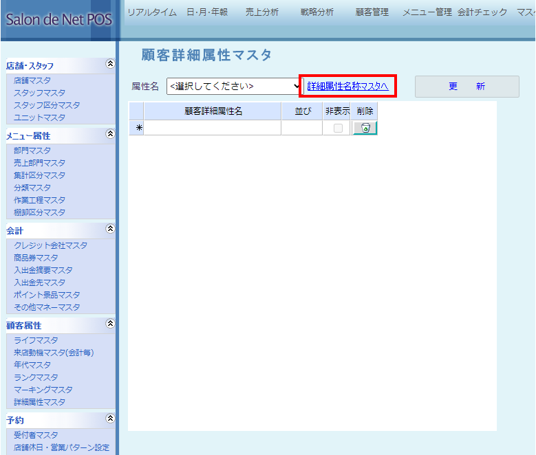 3. 画面左側に表示される「詳細属性マスタ」を押下してください。