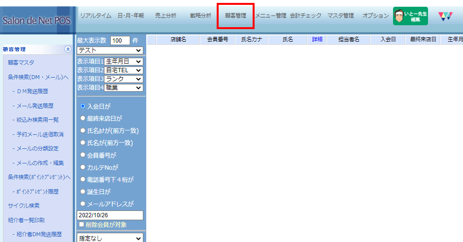 2. 画面上部に表示される「顧客管理」を押下してください。
