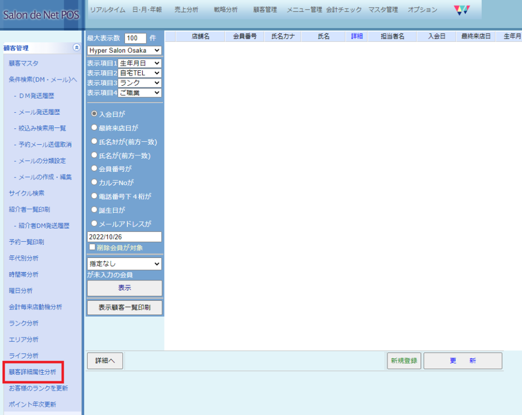 3. 画面左側に表示される「顧客詳細属性分析」を押下してください。